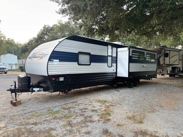 Recreational RV SALES LLC The blue book IS $ 28,600 We are ASKING $ 14,500 We have a YEAR 2022 Cherokee by Forest River Grey Wolf MODEL 29TE 36 ft Q bunkhouse All the bells and whistles ELECTRIC awning AND LED IN AND OUT Washer and dryer hook up Big Bathroom out side kitchen CAMPERS IS ALL READY TO GO AND COMES WITH EVERY THING YOU NEED GO CAMPING TODAY Power cord 2 gas bottle tanks Sewage line Water hose Tire chucks Spare tire You don’t need nothing NO PROBLEMS or issues with this camper GOOD TIRES Fully self-contained 2 FULL Kitchen 1 bathroom cold 2 ACs 50 AMP Power service And bumper pull 2/5/16 ball for towing LBS DRY 9500 Come see me at Recreational RV SALES LLC 10:00 to 7:30